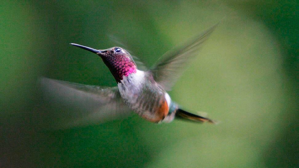 Apareció como todas las mañanas, tempranito. También lo solía ver al atardecer. Debía tener el nido muy cerca. Brillaba como una gema, tornasolado.