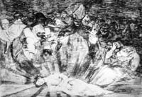 Junto con los Desastres, las series de grabados goyescos más conocidos incluye los Caprichos, donde la intención fuertemente crítica le valió una acusación ante la Inquisición.