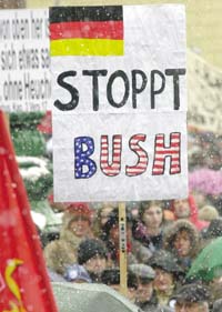El Bundestag vibra. Después de 50 años de decir que sí y doblar las rodillas ante el gran señor del Atlántico, de pronto Schroeder entusiasma a los pacifistas y se ha puesto una corbata lila, el color del eterno movimiento por la paz. “Vamos a llevar al triunfo la iniciativa de la paz –dice– acompañados por el Principio Esperanza.” “Debemos armarnos con el Coraje para la paz”, termina. Los diputados socialdemócratas y los verdes se ponen de pie y aplauden. Los alemanes aplauden a la paz, las enseñanzasde la historia. Pero no todos, la oposición de derecha, los democratacristianos lo calificarán a Schroeder de “Superambicioso amateur”. La derecha que se llama cristiana lo hace por intermedio nada menos que de una mujer, Angela Merkel. Ellos quieren apoyar a George W. Bush hasta el final, por más que cueste millares de muertos.