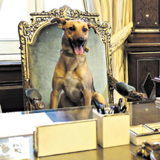 el perro en el sillón de la Rosada,