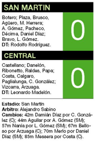 DEPORTES › SAN MARTIN Y CENTRAL EMPATARON 0-0