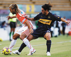 La otra ausencia notoria que tuvo Boca fue la de Riquelme, y en este caso el juvenil Chávez ocupó la posición de conductor. Con libertad para desplazarse delante de la línea de volantes, Chávez buscó por todos los sectores pero muchas veces sin ideas.