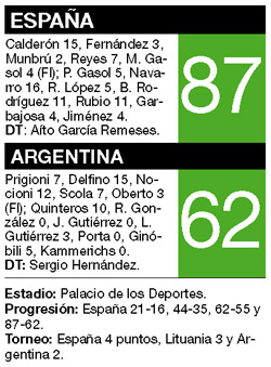 Para colmo, el equipo de Hernández no encontraba el aro y apenas logró sumar 7 puntos desde la línea de libres. Nada frente a los triples de Navarro y Bernie Rodríguez, dos cada uno, que España consiguió con cierta facilidad para darle a la selección argentina la última estocada.