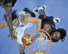 El segundo cuarto fue otra historia. Argentina se plantó con una defensa zonal que invitó a los NBA a probar desde lejos. Y como fallaron seis tiros seguidos, el conjunto de Hernández empezó a limar, con timidez, la diferencia. Para ello fue la clave la aparición de Nocioni y su temperamento, el gran momento de Scola y el buen ingreso que tuvieron en el juego Quinteros y los dos Gutiérrez. Confundido, Estados Unidos dejó de lastimar en los tableros y la Selección achicó la diferencia a seis (46-40), aunque un regalo de los árbitros permitió que Anthony metiera tres lanzamientos libres para irse al descanso 49-40.