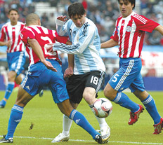 Lionel Messi y Juan Román Riquelme quedaron con el saldo en rojo. Los dos sufrieron la presión que metió Paraguay del medio hacia atrás, estuvieron permanentemente rodeados y equivocaron más pases que lo habitual. Aun así, dejaron su huella en la tarde lluviosa. Messi (6) le sirvió a Agüero el gol de la igualdad con una corrida notable y una habilitación perfecta y eso lo disculpa en parte de su discontinuidad. Todavía le debe al público argentino un gran partido en el Monumental. Riquelme (5) decepcionó en el primer tiempo por sus imprecisiones. Pero en el segundo, algunos de sus mejores momentos coincidieron con los del equipo. Estuvo más justo en los toques y en los pases, y le puso a Agüero un par de asistencias propias de su estilo.