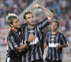 Los dos habían llegado con remates desde lejos, aunque el visitante impresionaba mejor por el manejo de Ríos y Patricio Rodríguez. Pero en cuanto Estudiantes acertó con una jugada bárbara, el desarrollo se decantó en su favor. Verón, Enzo Pérez y Gastón Fernández combinaron por la derecha para dejar solo y sin arquero a Boselli, que no tuvo problemas para convertir el primer gol. Entonces, el equipo de Astrada se adueñó de todo, en parte por sus virtudes y otro tanto por las fallas de su adversario. Sólo la impericia de sus atacantes en el momento de la definición le impidió al conjunto platense tomar más diferencia.