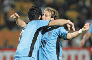 Muslera; Scotti, Lugano, Cáceres; Pereira, D.Pérez, Gargano, J.Rodríguez, Pereira; Suárez, Forlán.