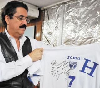 Dos días después, Flor Guevara apareció en el hotel de Tegucigalpa, donde avanza con dificultades el diálogo entre los golpistas y zelayistas, con la camiseta blanca que tiene la hache y el número 7 que usa su hijo, el volante y capitán de la selección, y que el político asilado recibió como una condecoración. “Para el señor Presidente José Manuel Zelaya de su amigo Amado Guevara”, dice la dedicatoria. La mujer, un baluarte del Frente de Resistencia contra el Golpe, se la entregó a Hortensia La Pichu Zelaya, la delgadísima hija de Mel, quien más tarde la mostró junto a su esposa en la embajada brasileña.