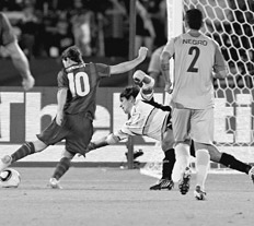 Como el planeta futbolístico y la FIFA esperaban, el campeón de la Champions League será el rival de Estudiantes en la definición del certamen que se disputa en Abu Dhabi. El rosarino jugó algo más de media hora y la rompió.