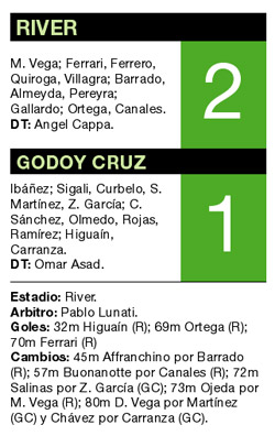 DEPORTES › EL CONJUNTO DE NUÑEZ GANO TRAS CINCO FECHAS AL DERROTAR 2-1 A GODOY CRUZ