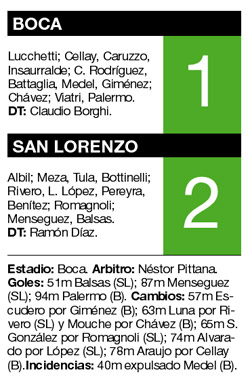 Era un partido de pronóstico reservado, debido a la mejoría que había mostrado Boca en la fecha pasada y al balance claramente superior que había obtenido San Lorenzo en cuanto a resultados. Finalmente, el equipo que dirige Ramón Díaz le ganó ayer al de Borghi por 2-1, en La Bombonera, y se prendió en la pelea por el campeonato, mientras que Boca profundizó su mal momento y quedó muy lejos de la punta.