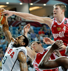 Rusia, como heredera de la Unión Soviética, mantuvo viva la llama de aquellos duelos con los EE.UU., y ayer la sostuvo durante los primeros 16 minutos, llegando a ponerse 35-30. Pero Estados Unidos apretó las marcas y fue contundente en el contraataque. Llegó al entretiempo 44-39 arriba, y en la segunda parte dominó los rebotes y lanzó veloces réplicas. Llegó a sacar quince puntos de ventaja (65-50) y sólo el amor propio de los rusos bajó la diferencia a los diez puntos finales.