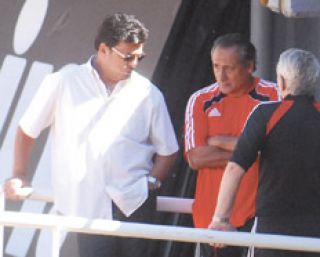 DEPORTES › FUTBOL DANIEL PASSARELLA SE PRESENTó EN LA PRáCTICA PARA HABLAR CON LOS JUGADORES