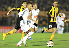 Tal como le había pasado como local ante Vélez, no fue posible ayer para Peñarol demostrar dominio sobre Santos. La lluvia no ayudaba, los jugadores se resbalaban y tampoco aparecían Mier y Martinuccio, las cartas bravas del equipo de Sergio Aguirre. Mientras que en el equipo brasileño, Neymar, Ze Eduardo y Alex Sandro fueron de menor a mayor, y con ellos encendidos llegaron las oportunidades de gol, que no se concretaron porque el arquero Sosa tuvo una buena noche, y también tuvo ayuda de los palos.