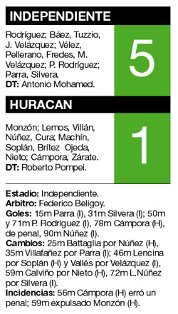 DEPORTES › INDEPENDIENTE GOLEO 5-1 A HURACAN, QUE ZAFO DEL DESCENSO POR MILAGRO