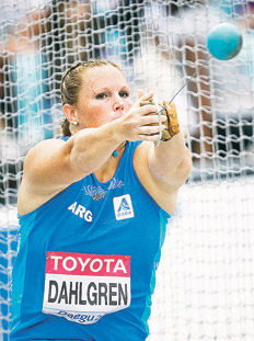 La argentina Jennifer Dahlgren, que ostenta el record sudamericano en lanzamiento del martillo, se clasificó ayer a la final del Mundial de Atletismo en Daegu, Corea del Sur, que disputará mañana. La atleta porteña, de 27 años, finalizó segunda en el grupo clasificatorio B, con una marca de 72,70 metros, en su tercer lanzamiento, y quedó detrás de la cubana Yipsi Moreno (73,29), subcampeona en los JJ.OO. de Beijing 2008 y Atenas 2004 y ganadora de la medalla de plata en los mundiales de Osaka, Japón, 2007, y Helsinski, Finlandia, 2005.