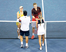 La pareja de dobles mixtos formada por los argentinos Eduardo Schwank y Gisela Dulko (de espaldas en la foto) se quedaron a las puertas de conquistar el título del Abierto de Estados Unidos, tras perder la final ante los locales Jack Sock y Melanie Oudin por 7-6 (4), 4-6 y (10-8). Los argentinos, que por primera vez jugaban juntos, no pudieron llevarse una final muy igualada, que se decidió en el super tie break, tras casi dos horas de partido. Dos errores, uno de Schwank en la red y una doble falta de Dulko, permitieron a los americanos cobrar una ventaja de 8-5 en la definición que terminó siendo decisiva.