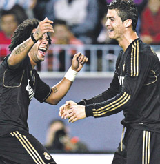 El delantero portugués Cristiano Ronaldo volvió a brillar ayer con un “triplete”, que le dio el triunfo 4-0 como visitante al Real Madrid ante el Málaga de Martín Demichelis y Diego Buonanotte, por la 9ª fecha de la Liga Española. El gol restante fue marcado por el argentino Gonzalo Higuaín, quien abrió el marcador del encuentro, y de esta forma llegó a los nueve goles en tan sólo tres cotejos.