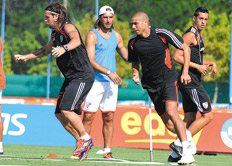 El plantel de River realizó ayer por la mañana en el predio de AFA en Ezeiza trabajos de definición, en los que se destacaron los delanteros Fernando Cavenaghi y David Trezeguet, que se entendieron a la perfección. River continuará concentrado en Ezeiza hasta el 21 de enero y desde allí viajará para los distintos compromisos veraniegos.