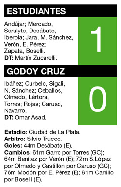 Sin embargo, cuando el capitán se tuvo que retirar por una molestia muscular, el trámite se le complicó a Estudiantes, que dejó pasar algunas chances sin definir. Sin su líder, el conjunto platense ya no pudo manejar la pelota y resolvió defender la victoria cerca de su arquero. Por eso, Godoy Cruz se le fue encima y hasta el último segundo pudo empatar, pero la media vuelta de Rojas salió apenas afuera. Así, Estudiantes y Verón pudieron festejar.
