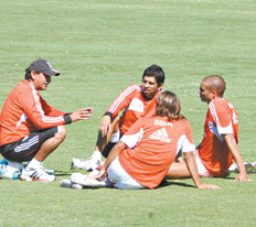 El plantel volverá a entrenarse hoy a la mañana en el predio de Ezeiza y mañana realizará la práctica de fútbol a puertas cerradas, en la que el técnico elegirá los titulares para enfrentar a Colón.