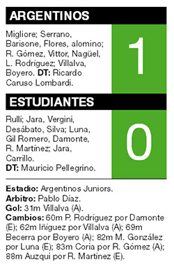 El partido se abrió y cerró al mismo tiempo en una única jugada: el gol de Villalva. Con un violento remate de más de 20 metros, el delantero aprovechó su oportunidad como titular y marcó la diferencia que Argentinos se dedicó a defender hasta el final del encuentro. En el complemento, Estudiantes redobló esfuerzos y pudo haberlo empatado, pero las buenas intervenciones del arquero Pablo Migliore le negaron la igualdad. “Cuando marcamos la diferencia el equipo lo resolvió bien, tuvimos varias chances importantes y hay que entender también al hincha que por ahí quiere fútbol y toque, pero veníamos de cinco partidos sin ganar”, justificó el DT.