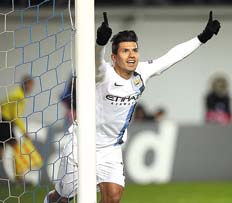 El delantero argentino Sergio Agüero (foto) marcó ayer los dos goles de Manchester City de Inglaterra, que derrotó 2-1 a CSKA Moscú de Rusia, de visitante, en el tercer partido del grupo D de la Champions League. Con este resultado, Manchester City, que logró su segundo triunfo en tres fechas y tiene seis puntos, alcanzó la segunda posición del grupo D, que tiene como líder al campeón Bayern Munich, que logró su tercera victoria consecutiva, tras golear 5-0 de local a Viktoria Plzen de República Checa. Por su parte, en el grupo B, Real Madrid derrotó 2-1 de local a Juventus, con goles del portugués Cristiano Ronaldo, el primero de ellos por asistencia del argentino Angel Di María, quien jugó desde el inicio, y el segundo de tiro penal.