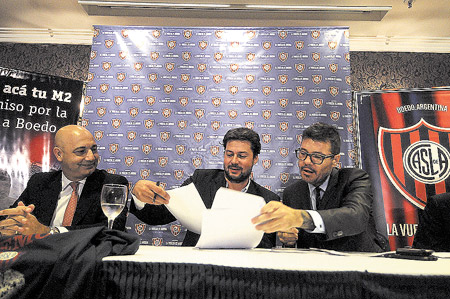 Matías Lamens y Marcelo Tinelli firman el contrato con la empresa. El ansiado regreso ya está firmado. Luego de la insistencia de la Subcomisión del Hincha, de la multitudinaria convocatoria de hace dos años a la Plaza de Mayo y de la promulgación de la Ley de Restitución Histórica en la Legislatura, San Lorenzo dio otro paso clave para recuperar su estadio en Avenida La Plata. En un acto desarrollado ayer, el presidente del club, Matías Lammens, confirmó que se concretó el acuerdo con la empresa Carrefour para regresar al predio de Boedo.