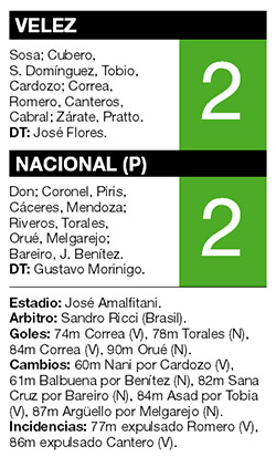 DEPORTES › VELEZ EMPATO 2-2 CON NACIONAL Y SE QUEDO AFUERA DE LA COPA