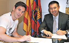 Antes de viajar rumbo a Argentina para arrancar la preparación de cara al Mundial de Brasil, Messi firmó un nuevo contrato con su club, con una marcada mejoría económica. De acuerdo con lo que informó la entidad catalana, se llevó a cabo una “adecuación” en el vínculo con Messi, que ahora percibirá 20 millones de euros por temporada, más un plus de 5 millones por cumplir distintos objetivos. En el acto de firma estuvieron el futbolista; su padre, Jorge Messi; y el presidente de la institución catalana, Josep Maria Bartomeu, entre otros. Luego de la firma, Messi regresará en las próximas horas al país, para unos días de descanso, antes de arrancar con la preparación con la Selección Argentina, prevista para el próximo lunes.