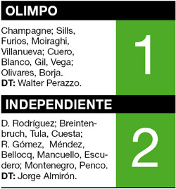 DEPORTES › INDEPENDIENTE CONSIGUIó UN VALIOSO TRIUNFO POR 2-1 FRENTE A OLIMPO