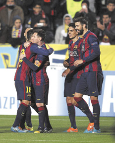 El delantero del Barcelona completó su gran noche a tres minutos del final del partido, luego de una gran jugada colectiva que concluyó con una asistencia de Pedro, para que tocara casi abajo del arco.