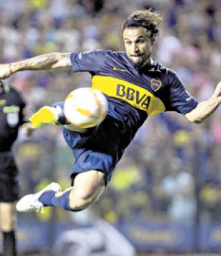 DEPORTES › FUTBOL SE IMPUSO POR 2-1 A WANDERERS DE MONTEVIDEO EN UNA BOMBONERA COLMADA DE HINCHAS
