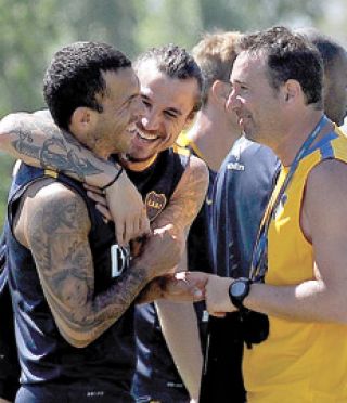 Carlos Tevez y Daniel Osvaldo se perfilan, como se esperaba, como la dupla de ataque de Boca para esta temporada según lo observado ayer en la práctica de fútbol que el plantel de xeneize realizó en Los Cardales, donde cumple los trabajos de pretemporada.