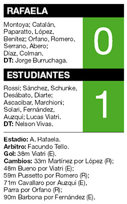 Estudiantes derrotó ayer a Rafaela por 1-0, con gol de Lucas Viatri, en un encuentro válido por la Zona 2 del torneo de fútbol de Primera División.