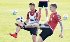 Por su parte, Marcelo Larrondo, quien aún no tiene el alta médica pero sigue sumando horas de trabajo intensivo, fue parte del equipo suplente en la ofensiva junto a Rodrigo Mora y Pity Martínez y si sigue evolucionando sin dolores la semana próxima podría volver a ser suplente. El delantero se recupera de una sinovitis y desde hace dos semanas que trabaja a la par del resto mientras observan cómo responde la rodilla derecha operada en abril de este año y que desde que llegó a River le permitió jugar dos partidos de suplente con apenas treinta minutos en cancha. En tanto, Luciano Lollo, quien ayer fue operado del quinto metatarsiano del pie izquierdo, recibió el alta médica e iniciará el trabajo de recuperación que le demandará tres meses con reposo absoluto en estas primeras semanas.