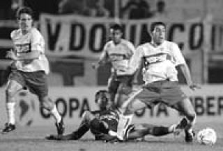 Cuando Boca comenzó a afirmarse y los locales a quedarse, llegó la primera chance clara para los de Bianchi. Una aproximación peligrosa dirigida por Barros Schelotto que incluyó una media vuelta en la puerta del área y un remate que pasó cerca del palo izquierdo del arquero Silvio Luiz. Lo que siguió hasta el entretiempo fueron débiles intentos de los hombres del Sao Caetano y débiles respuestas de los visitantes, quienes continuaban jugando mal la pelota.