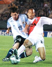 Era ideal para Messi el partido del domingo, en casa, ante un rival que no se jugaba nada. Sin embargo, los defensores peruanos que no deben haber oído hablar nunca de su compatriota Julio Meléndez –aquel estandarte del juego limpio y brillante– no vacilaron en pegarle duro cuando el pibe rompía la monotonía del juego y encaraba con su diabólica gambeta. Trac a los tobillos, trac a las rodillas. Le hicieron una decena de foules, la mitad de ellos muy violentos.