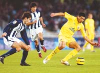 Con un gol de Juan Román Riquelme (foto), Villarreal derrotó 3-1 a Real Sociedad, como visitante, luego de ir en desventaja y quedó, con 26 unidades, transitoriamente en la tercera posición, a cinco puntos de los líderes Barcelona y Osasuna. En el otro adelanto, Valencia, con Pablo Aimar, apenas pudo empatar 1-1 con el Bilbao y quedó cuarto.