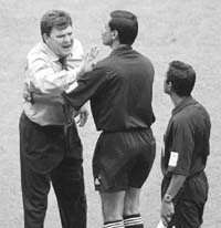 Una semana atrás, en Yokohama, Blatter había desviado las críticas de los árbitros hacia los líneas. “El problema de los errores en las decisiones arbitrales no es de los árbitros, sino de sus asistentes, y eso es algo que se debe corregir en el futuro”, dijo entonces el suizo. “La mayor parte de las decisiones equivocadas de los árbitros se producen en los fuera de juego, en los que la apreciación de los asistentes es fundamental, pero algunos de los jueces de línea carecen de la profesionalidad y conocimientos exigibles”, admitió Blatter.