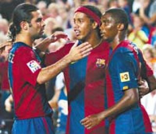 Barcelona derrotó 3-0 a Osasuna en un adelanto de la segunda jornada de la liga española. El defensor del título y líder junto a Valencia contó con una destacada actuación del camerunés Samuel Eto’o (foto), quien marcó dos goles y le cedió el tercero al argentino Lionel Messi. En otro adelanto, Valencia, con Roberto Ayala entre sus titulares, venció 1-0 al Atlético de Madrid (Sergio Agüero ingresó en el segundo tiempo), con un tanto de Villa. La fecha se cerrará hoy con Nástic-Celta, Mallorca-La Coruña, Villarreal-Recreativo, Levante-Real Madrid, Real Sociedad-Sevilla, Betis–Athletic de Bilbao, Getafe-Racing, Zaragoza-Espanyol.
