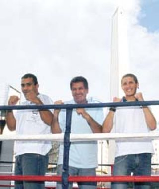 Los boxeadores Víctor Ramírez, Juan Martín Coggi y su hijo Martín (foto) participaron de una exhibición que se realizó frente al Obelisco porteño para promocionar las peleas que se realizarán el próximo viernes en el Buenos Aires Lawn Tenis Club. El ring será montado en el mítico estadio de Palermo para la realización de esta velada. En el trancurso de la exhibición de ayer, muchos curiosos se acercaron para presenciar el evento. De esa manera, se pudo observar a varios oficinistas con elegantes trajes luego de salir de su trabajo. En la avenida 9 de Julio se lo pudo ver a Mariano Carrera, campeón mundial mediano de la AMB, peleando ante Julio César Domínguez.