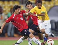 La superioridad de Brasil quedó de manifiesto casi desde el arranque. Con su clásico toque de pelota dominó todos los aspectos del juego, ante un rival que lucía vencido casi antes de iniciarse el partido. Por eso, la incógnita pasaba por saber hasta cuándo podía resistir el conjunto de Nelson Acosta. Y la resistencia apenas duró un poquito más de un cuarto de hora, cuando Maicon peinó un corner en el primer palo y por el segundo apareció Juan para cabecear al gol, ante la floja oposición del arquero Bravo.