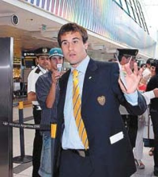 Los jugadores de Boca arribaron a Ezeiza en medio de una gran conmoción, ya que centenares de hinchas se dirigieron hasta el aeropuerto para despedirlos. Juan Román Riquelme viajó pero no jugará, Martín Palermo y Sebastián Ba-ttaglia fueron los más ovacionados.
