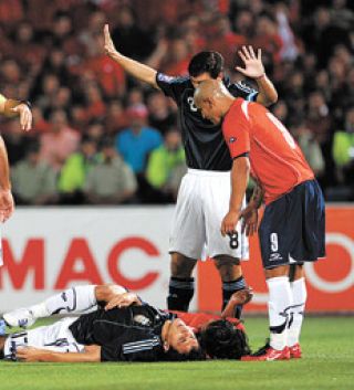 Nicolás Burdisso sufrió un traumatismo de cráneo en el choque de cabezas con el delantero chileno Mark González, pero los estudios que se le practicaron no revelaron ninguna secuela grave. El choque trajo mucha preocupación en el cuerpo técnico del seleccionado nacional, después de que los médicos lo atendieran durante cinco minutos mientras permanecía tendido en el campo de juego. El delantero chileno tuvo que ser trasladado desde el mismo campo de juego en una ambulancia con un cuello ortopédico y conectado a un tubo de oxígeno, para ser diagnosticado con un traumatismo encefalocraneano (TEC) cerrado, sin peligro vital, quedando internado a la espera de su evolución.