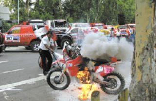 El Dakar es, fundamentalmente, drama. Lo vivió en carne propia el campeón argentino de cross-country, Javier Pizzolito, que no pudo debutar en la competencia tal como era su sueño desde hace un año. Su moto Honda 450 se prendió fuego foto) antes de salir del predio de La Rural, y le impidió al piloto tomar la partida. “No entiendo nada –dijo el desilusionado cordobés–. La moto estaba en punto muerto, hubo chispas y todo se quemó.” Todo indica que el siniestro se debió a un escape de combustible, y que se inició cuando Pizzolito quiso darle arranque a la moto. “Esto es una gran desilusión. Ahora hay que ver lo que ocurrió”, repetía el motociclista, quien informó que no había matafuegos disponibles en la zona y por esa razón se demoraron en apagar el incendio. Pizzolito, de 29 años, debutaba en el Dakar pero aun así, quizá sin la experiencia necesaria, había confiado sus intenciones de finalizar entre los 20 primeros en su categoría. “Estábamos listos para salir rumbo al Obelisco –contó el piloto pinamarense– cuando la moto comenzó a incendiarse. Lo que más me sorprendió fue que no hubiera un matafuegos cerca. La organización debió haber previsto eso. Es cierto, ocurrió en un lugar insólito, pero deberían haber tomado esos recaudos.” Pizzolito se confesó descorazonado porque había “trabajado muchísimo para representar al país en esta competencia tan importante”.
