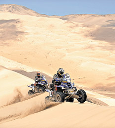 La división de cuatriciclos es la más novel del Dakar, pero los argentinos no le tienen compasión: los hermanos de Las Flores Marcos y Alejandro Patronelli siguen al frente de la clasificación, una vez cruzada la Cordillera, y al llegar a Copiapó tuvieron un plus: se confirmó que el checo Josef Machacek, ganador de la edición 2009 del Dakar por más de dos horas sobre Marcos Patronelli, abandonó la prueba. Machacek se abstuvo de largar el único especial del día, sobre 163 kilómetros, íntegramente disputado en territorio chileno, dirigiéndose fuera de competencia al vivac de Copiapó. De esta manera, ahora son cuatro los argentinos que encabezan la prueba: el primer “extranjero” en la general es el español José González Corominas, a más de 34 minutos de Marcos Patronelli, que le lleva 8m15 a su hermano Alejandro, 26m50 al mendocino Sebastián Halpern y 30m55s al piloto de Cariló Jorge Santamarina.