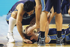 Pero la fatalidad llegó ayer en el salto inicial. En la primera jugada del partido, Andrés Nocioni saltó con el brasileño Tiago Splitter y cuando cayó, se derrumbó sobre el parquet, con evidentes muestras de dolor en su tobillo derecho. Sin pisar y agarrado del hombro de Oberto, el santafesino salió del campo y, tras una breve revisión, fue trasladado al vestuario, acompañado de su amigo Leo Gutiérrez. El silencio primero y los aplausos después del público presagiaban que algo grave había pasado. El diagnóstico inicial fue un esguince, de leve a moderado, que lo dejó afuera del partido de ayer y del juego de hoy, pero que no le impediría llegar al decisivo cruce del sábado. Al menos, hasta que se constate la evolución. “Los médicos todavía no lo saben. Hay que ver las próximas 24 horas para ver cómo sigue”, remarcó Julio Lamas.