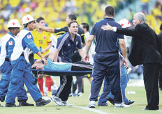 Nicolás Burdisso sufrió una rotura de ligamentos en su rodilla izquierda, según confirmó anoche el cuerpo médico del equipo argentino, y tendrá seis meses de recuperación. El incidente se produjo cuando, a los 33 minutos, al intentar cortar con vehemencia una pelota frente a James Rodríguez, su pierna se trabó con la del volante colombiano y su rodilla se torció de manera impresionante, lo que le provocó la lesión.