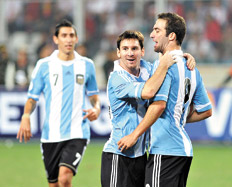 Hasta el partido de anoche en Lima, en lo que va del año la Selección había jugado y ganado seis partidos: tres por Eliminatorias (Colombia, Ecuador y Paraguay) y tres amistosos (Suiza, Brasil y Alemania). Y de los 19 goles marcados (más de tres por cotejo), los delanteros hicieron 17 (Messi 10, Di María 3, Higuaín y Agüero 2). Sólo Federico Fernández de cabeza ante Brasil y Sammy Khedira en contra ante Alemania quebraron el asombroso predominio de un grupo de delanteros que siempre hace lo que de ellos se espera: goles, ni más ni menos.